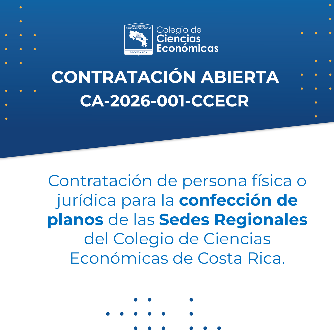Información: https://www.colegiocienciaseconomicas.cr/documentos/Carteles/Pliego-Condiciones-Diseno-Planos-SR.pdf Conocer más